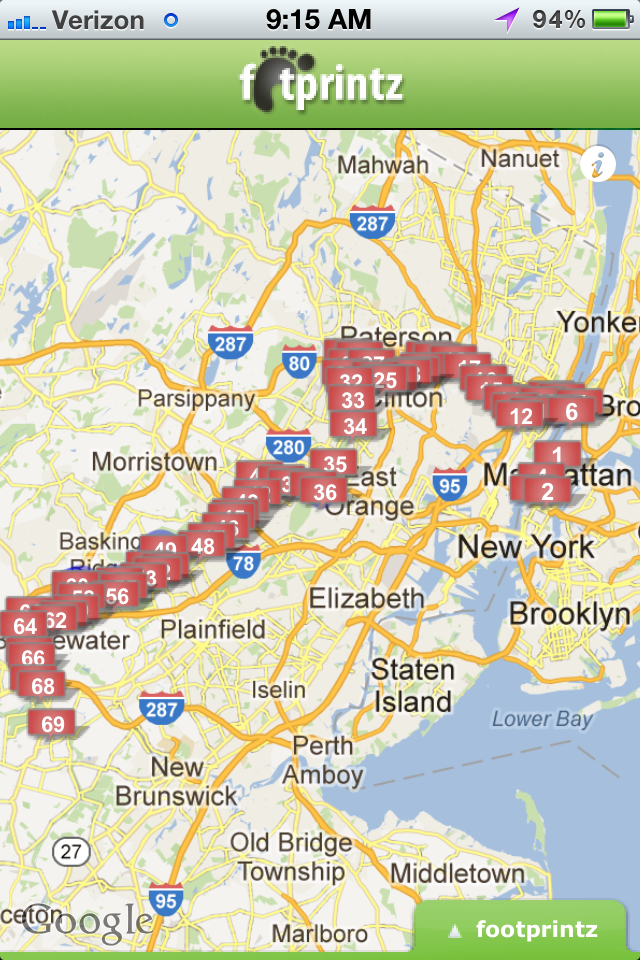 My GPS plan had a huge hole in it.  I initially planned on using the Google maps bicycle directions.  Things is, these (beta) bicycle directions are available thru a non-mobile browser on a laptop/desktop.  But not on my iPhone browser.  I didn’t notice this until the day before I left. Soooo, I initially resorted to using the walking directions from my Motion-X app.  I quickly learned that those directions where super dumb.  They tried to have me on the side of highways.  Soooo, my only resort was to just use the maps app on my iphone and just eyeball it.  This actually turns out to not be so bad and is a bit more fun than staying along a planned route.